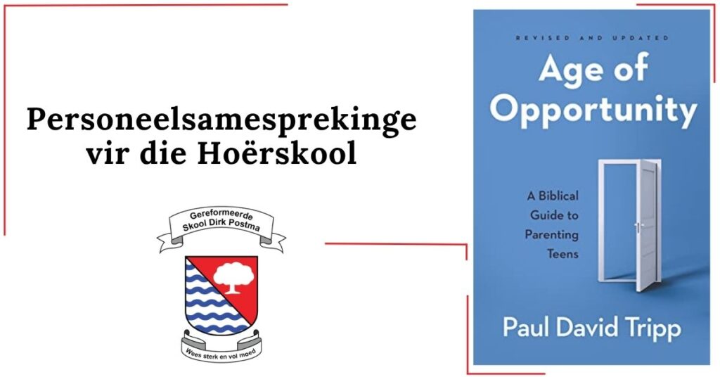 Age of Opportunity is ’n boek wat volwassenes leer om tieners as jongmense wat begeleiding nodig het te sien. By GSDP het ons dus besluit dat die hoërskoolpersoneel hierdie boek behandel juis omdat hulle hul roeping nie slegs as akademiese onderrig sien nie, maar ook as begeleiding van die tiener in hul karakter, geloof en lewensvorming.